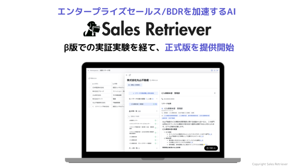 Sales Retriever株式会社は1月16日に、企業リサーチ型商談準備AI「Sales Retriever(セールスレトリーバー)」の正式版を提供開始すると発表した。