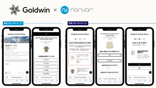 同社が運営する公式オンラインストア「Goldwin Online Store」では、商品の返品・交換にかかっていた膨大な工数とコストの削減を目的とし、『Narvar』の返品・交換機能を導入。これにより、カスタマーセンターに問い合わせすることなく、お客さま自身で完結できるストレスのない返品・交換体験を実現し、Goldwin Online Storeでの再購入率やLTVの向上を目指します。