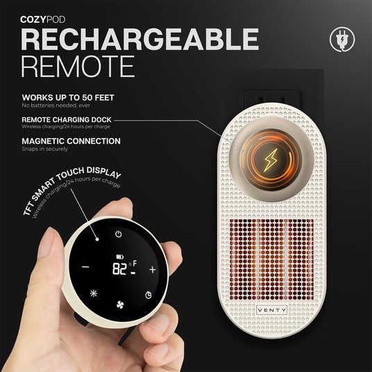 CozyPodはリモコンで簡単に操作でき、離れた場所からでも暖房の調整が可能です。さらに、リモコンは本体にマグネットでくっつくため、置き場所に困らず、無くす心配もありません。忙しい日常でも、ボタンひとつで快適な温度をキープ。コンパクトながら使いやすさにこだわった設計で、あらゆるシーンで便利に使えます。