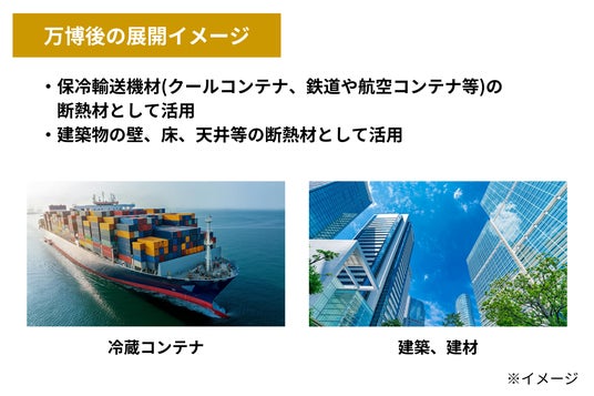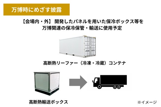 万博時には会場内外で本パネルを用いた断熱輸送ボックス等を、保冷保管・輸送に使用予定です。