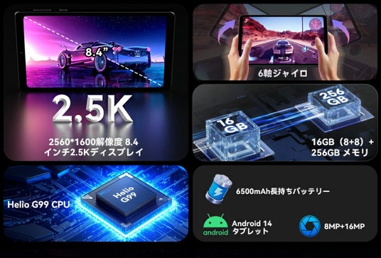 Apad2は大容量ストレージ、Android 14を搭載し、2560×1600高解像度、Widevine L1に対応した8.4インチ高解像度ディスプレイの高性能タブレットです。スマートフォンの画面サイズに不満を感じるユーザーにとって、Apad2はより大きな画面で快適な操作体験を提供します。