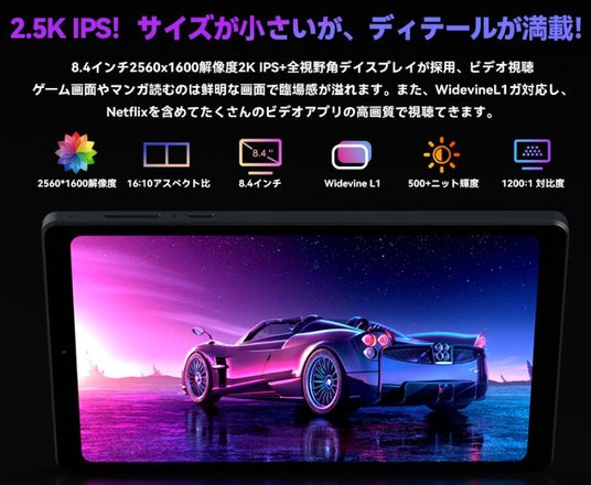 Alphawolf Apad2 8.4インチ 高精細で明るい画面