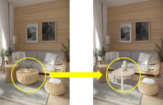 不動産・建設業界では、設計プロセスにおいてデザインの修正や変更が頻繁に求められます。特に、中古物件におけるリノベーション案の作成や、クライアント要望に応じたパースの部分修正には多くの工数が発生しています。
