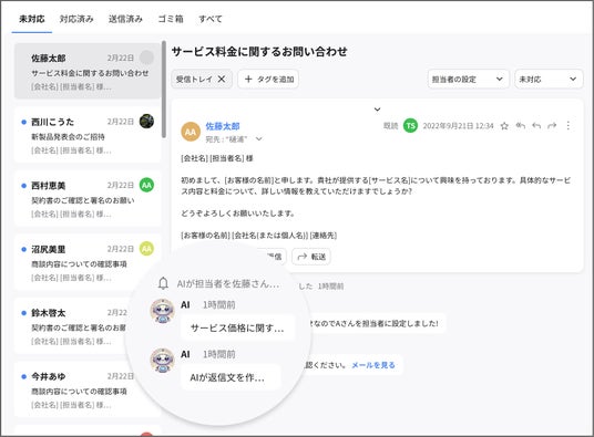 「AIアシスタント」がメール対応を代行するAIエージェントを提供開始