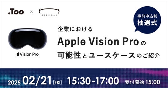 クリエイティブ市場の総合商社・株式会社Too(本社/東京都港区⻁ノ門3-4-7、社長/石井剛太、以下Too)は、株式会社ホロラボ(本社/東京都品川区、代表取締役CEO/中村薫、以下ホロラボ)との共催で、Apple Vision Proに関する企業向けセミナー「企業におけるApple Vision Proの可能性とユースケースのご紹介」を2025年2月21日(金)に開催します。