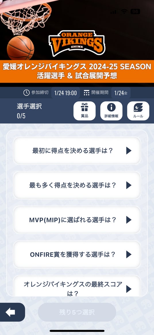 愛媛オレンジバイキングス 1月24日(金)・25日(土)ホームゲームの活躍選手&試合展開予想をスポーツ予想アプリ「なんドラ」で開催!