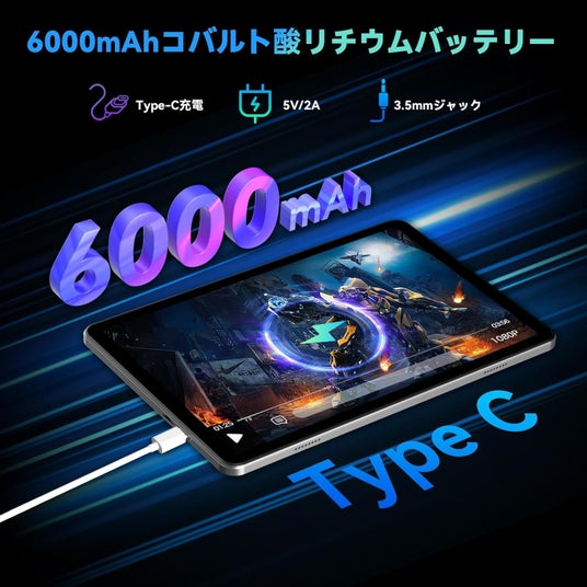バッテリー容量は前作の5500mAhから6000mAhと10%増加しました。超節約モードを搭載し、超長待機時間で電池切れの心配がなく、汎用性の高いType-C充電方式を採用しており、移動中にもストレスなく映画、電子書籍、音楽鑑賞などをお楽しみいただけます。