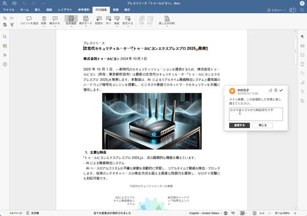 ドキュメントエディターを搭載しており、ファイルを閲覧できるだけでなく、ブラウザやモバイルアプリから編集することも可能になった。しかも1つのファイルを最大10人で同時に共同編集ができるようになる。