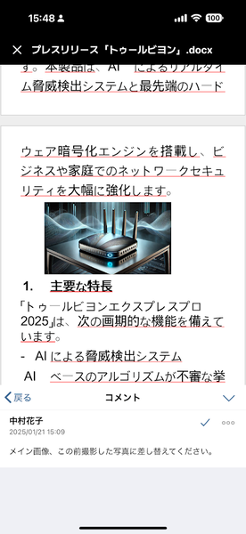 ファイルをダウンロードすることなくLINE WORKS上で編集できるので、バージョン違いが散在したり、先祖返りしたりすることがなくなる。複数メンバーで同時に作業するので、ファイルをやり取りする手間もなく、ビジネススピードがアップすること間違いなしだ。