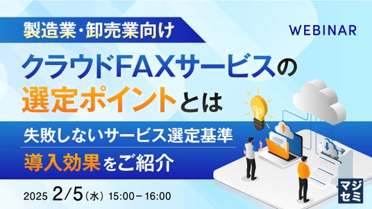 マジセミ株式会社は「【製造業・卸売業向け】クラウドFAXサービスの選定ポイントとは」というテーマのウェビナーを開催します。