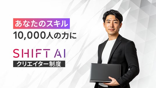 AIに関する知識を共有し、互いに研鑽を重ね、最高の実践の場を創り出す。それがSHIFT AIのクリエイター制度の目指す未来です。この制度を通じて、皆様の中に眠る「知」を社会に役立つ「価値」へと変えるとともに、AI情報の集積地としての役割を果たし、日本をAI先進国へと導く一助となることを目指しています。