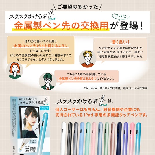 【販売開始】iPad専用タッチペン「スラスラかける君」替え芯(交換用ペン先)Apple Pencilペン先としても◎『極細金属製ペン先3本セット』ユーザー待望、快適な書き心地へ(福岡:ベルモンド)
