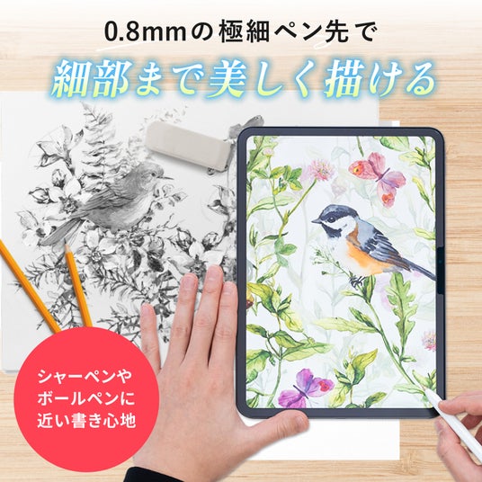 本商品は、極細0.8mmの金属製ペン先で、より滑らかな書き心地と高い耐久性を実現しました。また、Apple Pencilにも使用いただけます。