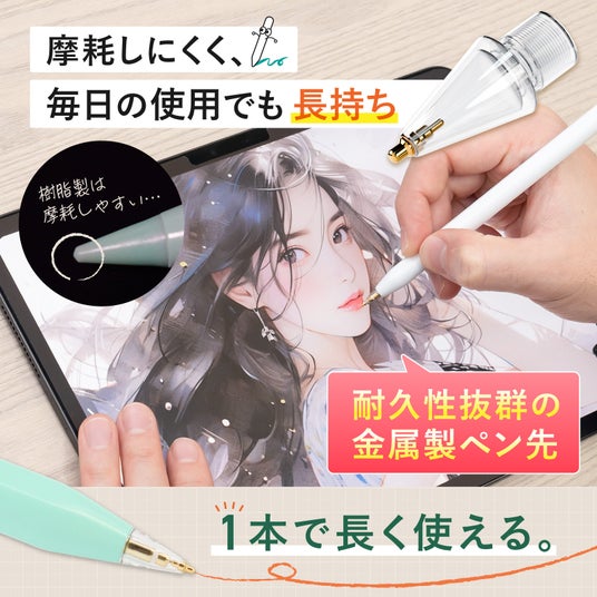 iPad専用スタイラスペンとして人気のスラスラかける君の金属製ペン先がついに販売開始。Apple Pencilにも使用でき、上質な書き心地にユーザーからの要望が多かったため、今回販売することになった