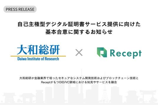 大和総研とReceptによるDID/VC技術を活用した自己主権型デジタル証明書サービス提供に向けた基本合意に関するお知らせ