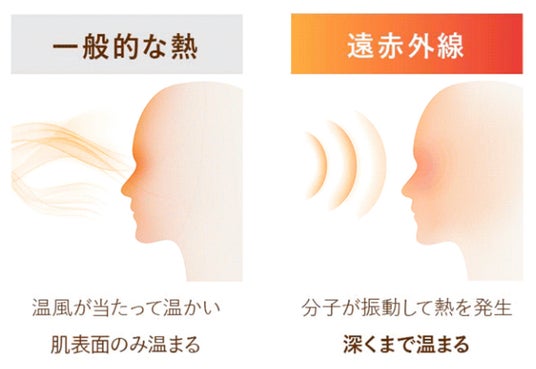 物体を直接温める性質を持つ電磁波「遠赤外線」を採用し、心地よい温熱効果を実現。肌の表面だけでなく、目元の奥深くまでじんわりと温めることで、よりリラックスした極上の目元ケア体験を可能にします。