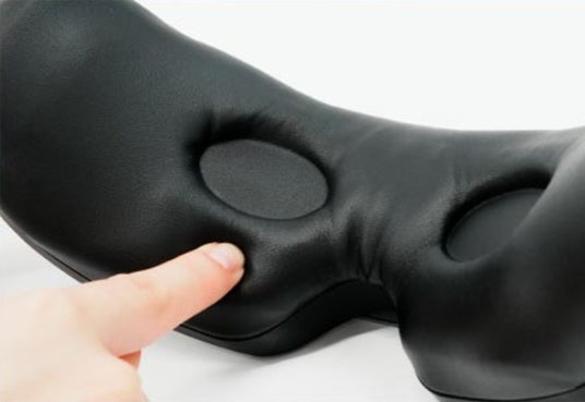 目元に触れる部分には上質なレザー素材を採用し、従来品と比べて高級感がアップ。さらに、やわらかく押し沈むクッション性のある素材が、肌への優しさと快適なフィット感を実現しました。お手入れも簡単で、清潔に保ちやすい設計です。