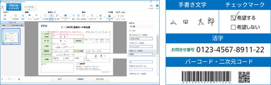 手書き文字・チェックマーク、活字、バーコードの認識に対応