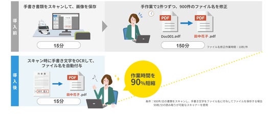 「PaperStream Capture Pro」は、スキャンから画像編集、自動仕分けが可能な標準添付ソフトウェア「PaperStream Capture」に加えて、より高度な機能を搭載した有償版のソフトウェアです。今般の機能強化により、日本語を含む6言語の手書き文字(注2)や活字、チェックマーク、バーコードなど、様々な文字種のデータ抽出に対応しました。申請書やアンケートなど、紙文書のデジタル化にかかる作業を大きく効率化します。