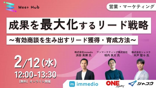 2/12 に開催される「成果を最大化するリード戦略~有効商談を生み出すリード獲得・育成方法~」に代表の浜田が登壇します。
