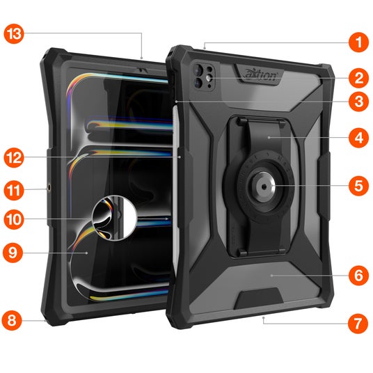 米軍規格 MIL-STD-810H の耐衝撃性能と完全防水(IP68)でiPadを保護。標準搭載のハンドストラップで快適操作。ショルダーストラップの取付けも可能な最強iPad保護ケース。