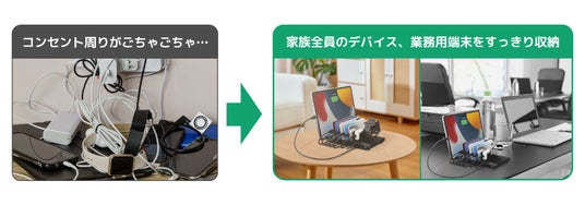 - スマホやタブレットを10台まとめて充電、すっきり収納