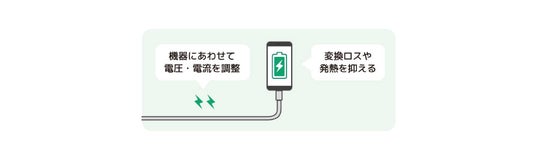 急速充電が可能な「PD(Power Delivery)」にくわえ、機器の状態にあわせて効率的に充電できる「PPS」にも対応。