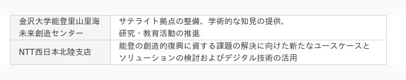 本連携協定締結後も、継続的に意見交換を行い、双方がもつ知見やリソースを活かした具体的な取り組みを検討してまいります。取り組みの推進にあたり、輪島市内にあるNTT輪島ビル内に活動拠点を開設予定です。本協定による取り組みを通じて、能登エリアの課題解決に貢献してまいります。