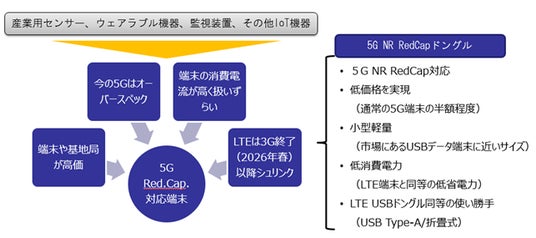 現状の5Gの規格は4G LTEの規格と比較し、製品のコスト、消費電力、サイズなどがオーバースペックであり、通信速度を求めないIoT/M2Mの用途には適していない状況であり、特にIoTの利用が多いローカル5Gでは導入が進まない一つの要因にもなっております。