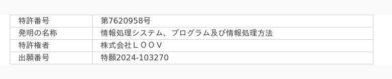 株式会社LOOV(本社:東京都目黒区、代表取締役CEO:内田雅人、以下LOOV)は、対話型パーソナライズ動画で営業DXを実現する「LOOV(ルーブ)」において、情報処理システム、プログラム及び情報処理方法に関する特許を取得したことお知らせします。