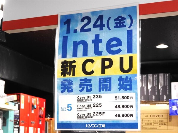 Arrow Lake-Sことインテルの最新デスクトップ向けCPU「Core Ultra 200S」シリーズの「Non-K」モデルが発売となった。登場したのは、「Core Ultra 5 225」、「Core Ultra 5 225F」、「Core Ultra 5 235」の3モデル。秋葉原では、パソコンショップアーク、ドスパラ秋葉原本店、パソコン工房 秋葉原パーツ館、ソフマップAKIBA パソコン・デジタル館、ツクモパソコン本店、TSUKUMO eX.で販売中だ。
