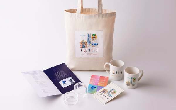 プランに含まれるオリジナルグッズの中には、横浜・元町のテーブルウェア専門店「タカラダ」とコラボしたマグカップや、A4サイズ収納可能なエコバッグ、ホテルの外観が描かれたカードキー、小物入れとしても使えるガラストレイなど、実用的で思い出深いアイテムが揃っている。さらに、宿泊やレストラン利用者にはオリジナルポストカードもプレゼントされ、SDGsを意識した米紙が使用されている。