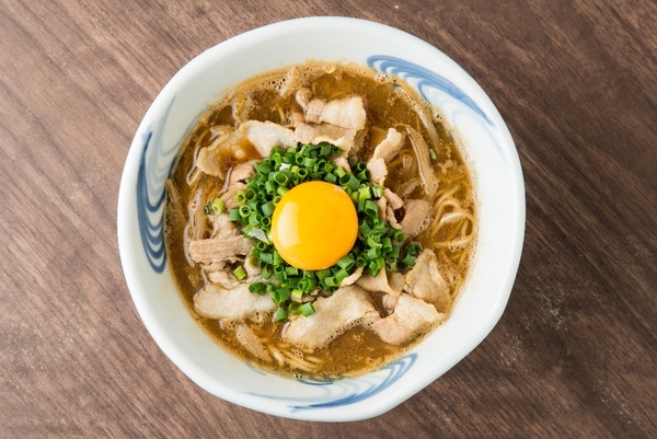 通常メニューに使うものより濃度を上げた鶏白湯と少し強めの醤油ダレのスープに、甘辛い豚バラ肉をたっぷりトッピング。濃厚な味わいながら卵のまろやかさとバランスのよさで、スルスルと箸が進む一杯に仕上げた。
