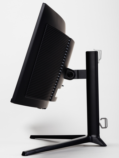 高さ調節は120mmの範囲で調節できるほか、左右の首振りであるスイーベル機能は左右ともに20度用意され、前後の傾きであるチルト機能は+20~-5度の範囲で調整可能だ。また、100×100mmのVESA規格にも対応しているので、アームなどを装着することもできる。