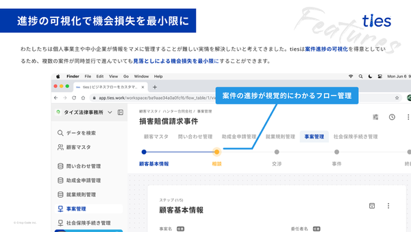 案件の進捗を視覚化し業務を効率化する顧客・案件管理システム「ties」正式ローンチ