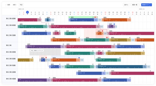 - - 化学業界、またバッチ生産特有の複雑な生産計画に対応し、計画草案を最適化AI(アルゴリズム)により自動的に作成。