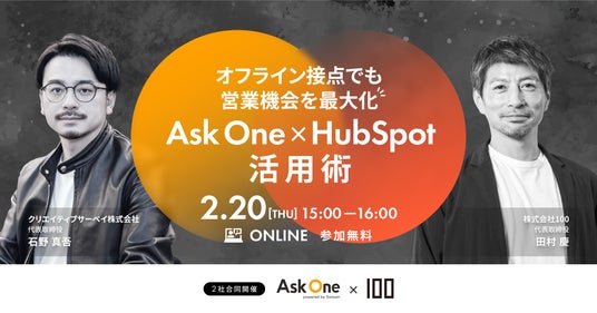 2025年2月20日(木)、株式会社100とクリエイティブサーベイ株式会社、共催ウェビナーを開催「オフライン接点でも営業機会を最大化!Ask One × HubSpot活用術」