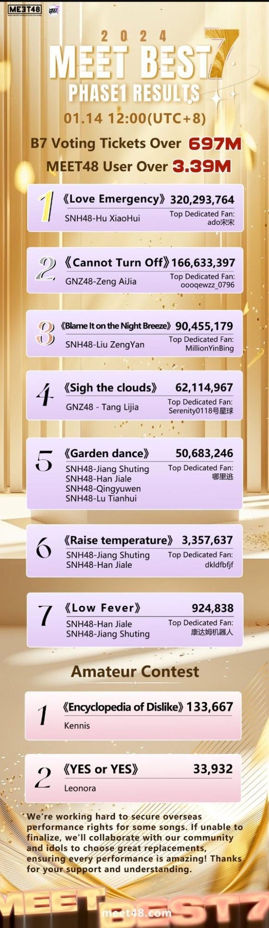 1月15日、MEET48が提供するDApp「MEET48」上にて開催されていたアイドルの楽曲に投票する企画「MEET BEST7」の結果が発表されました。