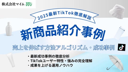 株式会社マイム(本社:東京都品川区、代表取締役社長:古川 湧一、以下「当社」)は、新商品を発売の皆様を対象に「2025年版TikTokトレンドレポート」を公開いたしました。本レポートは、TikTokを活用した最先端のプロモーション事例や成功パターン、そして結果に直結する戦略的な運用ノウハウを一冊に集約。