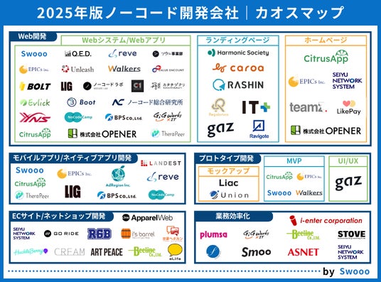 ノーコード受託開発事業を展開する合同会社ゼロイチスタート(本社:東京都中央区)は、「2025年度 ノーコード受託開発会社カオスマップ」を公開しました。