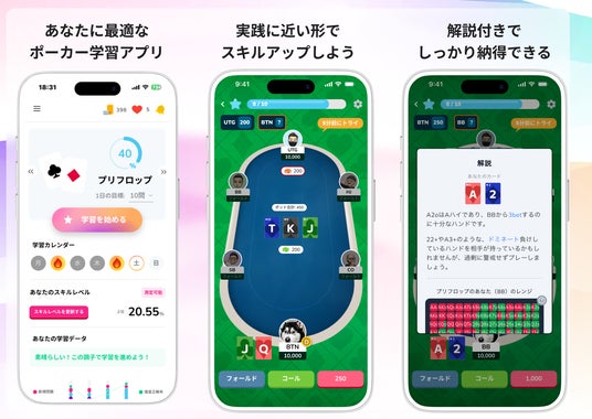 合わせて、アプリストアの教育カテゴリ内ポーカー学習アプリランキング1位も獲得