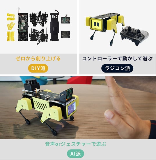 DIY版は、組立てを楽しみたいDIY派の方に、すぐ遊びたい人やコントローラーで動かして遊びたい人には、あらかじめ組立てられた完成版をオススメしています。