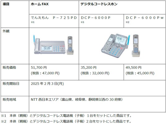 西日本電信電話株式会社(大阪府大阪市、代表取締役社長:北村亮太 以下、NTT西日本)は、従来より提供しているホームファクス及びデジタルコードレスホンに、多様化している特殊詐欺への対策機能や、温度・湿度アラームによる熱中症等の見守り機能を追加した機種である、ホームファクス「でんえもん P-725PD」、デジタルコードレスホン「DCP-6000Pw/P」を2025年2月3日(月)より提供開始いたします。