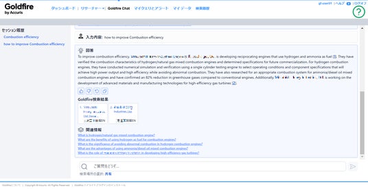 「Goldfire Chat」:生成AIによる回答およびレポート作成を可能にするオプション