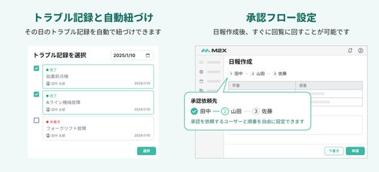 現場にとけ込む設備保全アプリ「M2X」、待望の日報DX化を含む新機能を大幅追加