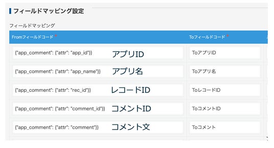 連携したコメント属性と連携先アプリのフィールドコードを紐付けするだけ