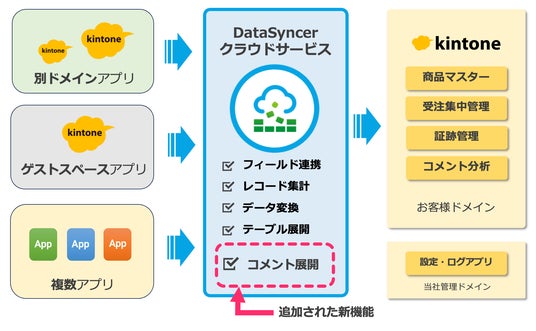 kintone特化型のデータ連携サービス「DataSyncer(R) for kintone(データシンカー(R))」を開発・運営するクラフテクス株式会社は、kintoneアプリ内のコメントデータを別アプリのレコードとして連携する新機能をリリースします。