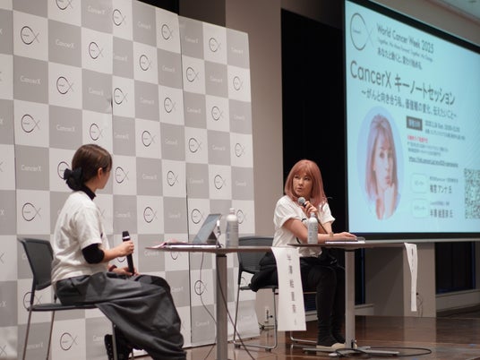 がん治療中の梅宮 アンナ氏(株式会社anna's.com 代表取締役社長)を迎え、半澤 絵里奈氏(CancerX共同発起人・理事)が、事前に参加者から寄せられた質問を元にインタビュー形式で実施。梅宮氏は自身の治療選択や治療後の生活、仕事との向き合い方について語りました。標準治療を信じて進んだこと、治療後の身体の変化への対応、医療以外のサポートの必要性について言及。また、「がんのリアリティを発信し続けたい」とし、今後はアドバイザー活動やアピアランスの選択肢を広げる取り組みを進める意欲を示しました。