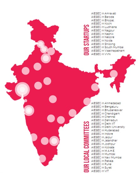 アイセックインド支部についてインド人学生は、アイセックインド支部を通じてインターンシップに応募します。アイセックインド支部の委員会は主に都市ごとに存在していますが、インド工科大学デリー校、デリー大学、ベロール工科大学には大学支部があります。委員会数は34あり、様々な優秀な大学を網羅しております。インド工科大学はデリー、ボンベイ、マドラス、ハイデラバード等ともコネクションがあります。アイセック・ジャパンではインド支部との連携の強化も進めており、研修生の募集にあたって、弊団体による高度なスキルを持つインド学生への広報も可能となります。