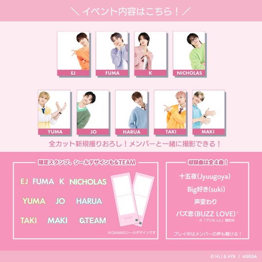 本日より、プリクラ『GIMMI』『totolu』の2機種で「&TEAM」イベント開催!